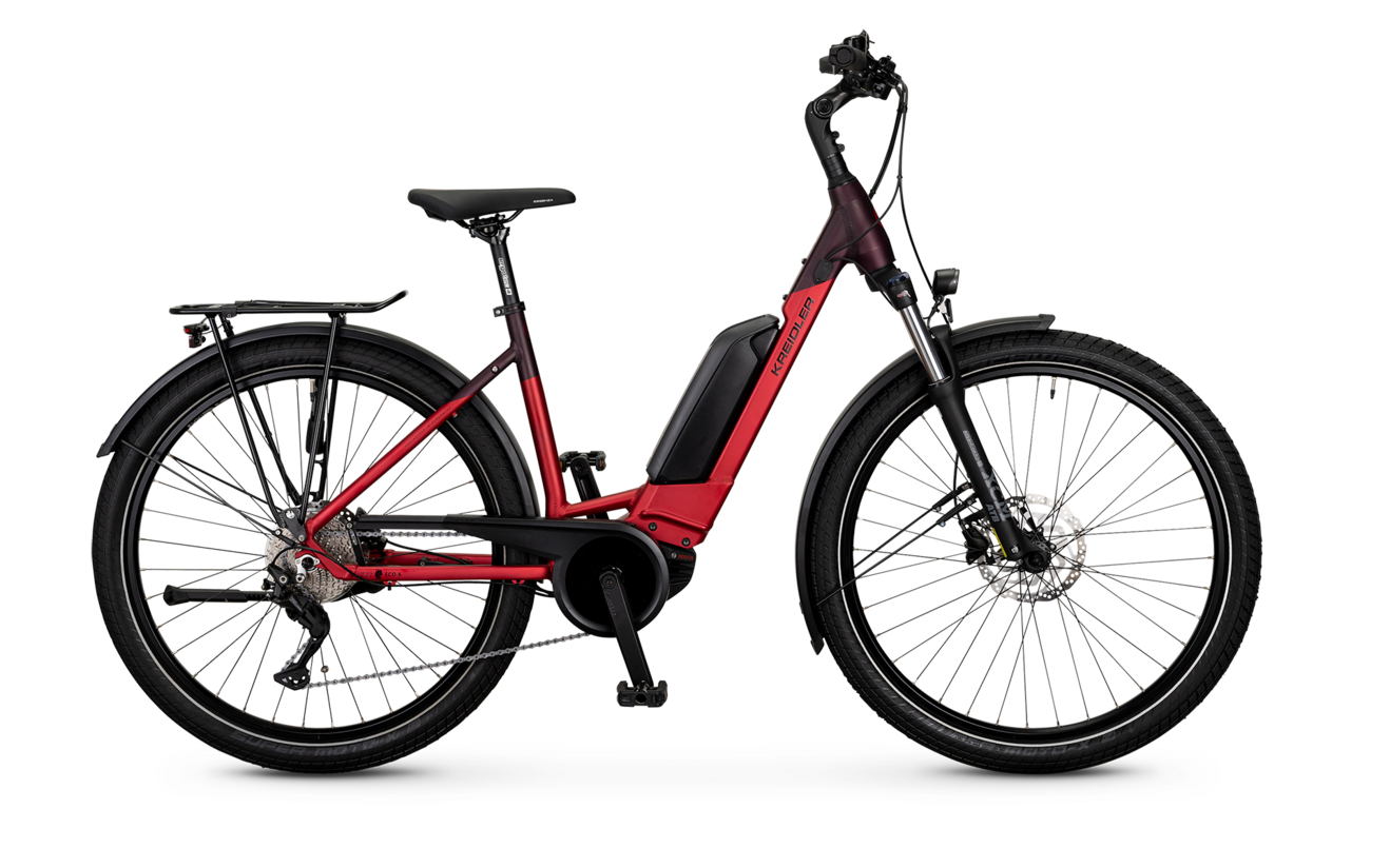 Far away from the city centre as well as on daily routes in urban areas, the 36 V mid-engine of the Bosch Performance Line CX (Gen. 4) with 250 Watt provides powerful and reliable support. The striking matte red of the frame turns this e-bike into a real eye-catcher.